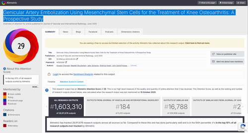 كما أن اختيار هذا المقال للنشر والتميّز في مجلة JVIR—المعروفة عالميًا بوصفها من أكثر الدوريات تخصصًا وموثوقية في مجال الأشعة التداخلية—يمثل فرصة فريدة للتعريف بالمنجزات العلمية الوطنية، ويفتح آفاقًا واسعة لتعزيز التعاون العلمي مع المراكز والجامعات الدولية الرائدة.
