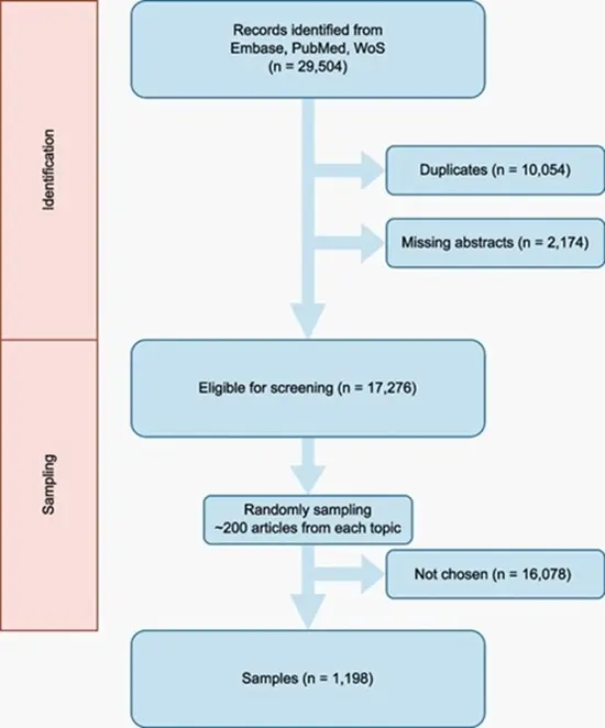 Methods: A prospective simulation study was conducted between May 2nd and 24th, 2023, comparing ChatGPT's performance in screening abstracts against that of general physicians (GPs). A total of 1198 abstracts across three subfields of radiology were evaluated. Metrics such as sensitivity, specificity, positive and negative predictive values (PPV and NPV), workload saving, and others were employed. Statistical analyses included the Kappa coefficient for inter-rater agreement, ROC curve plotting, AUC calculation, and bootstrapping for p-values and confidence intervals.